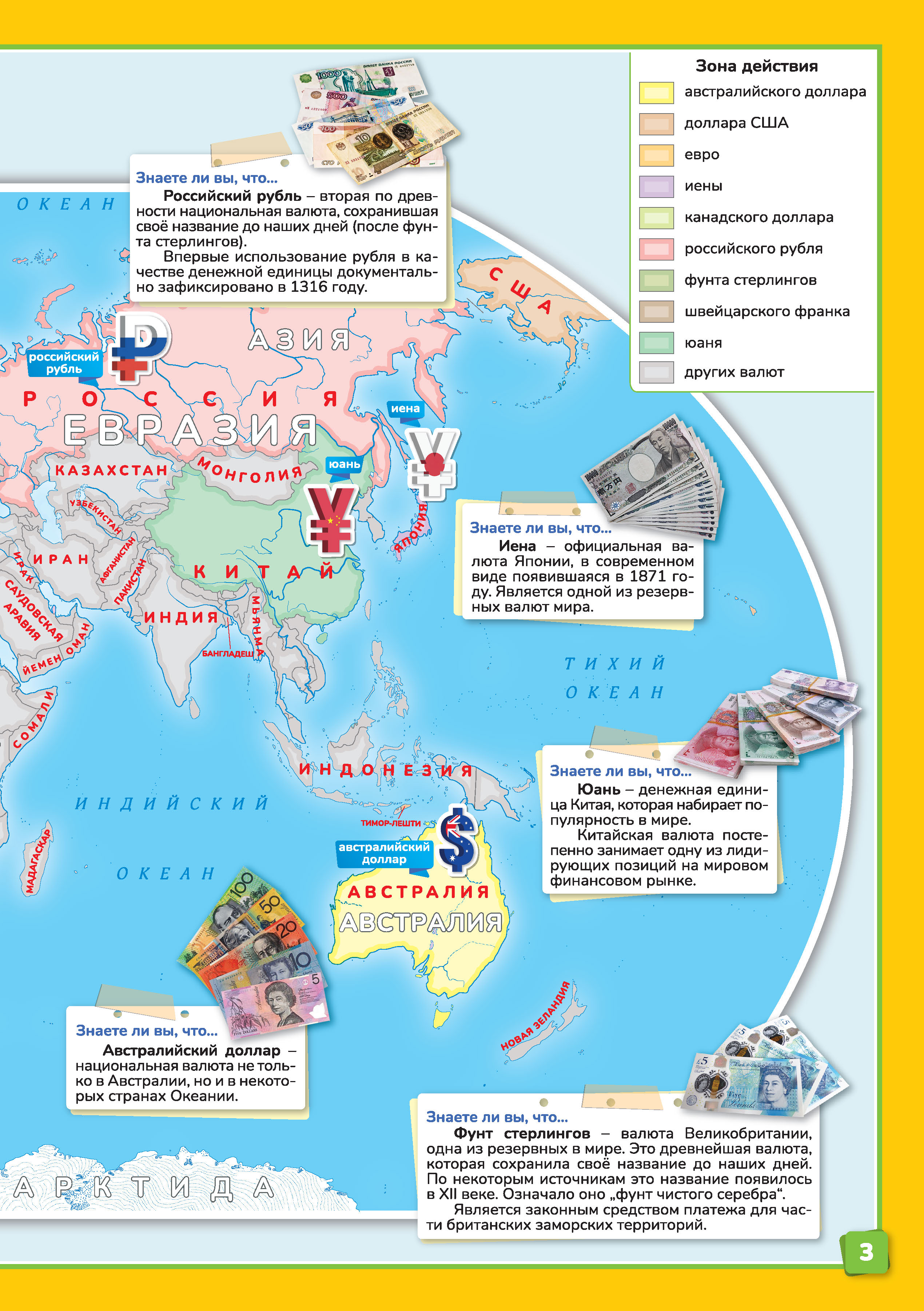 На страницах атласа вы узнаете, что такое деньги, откуда они появились, а также как выглядят и как называются. Ведь у каждой страны есть своя валюта, которая имеет свою историю и свои особенности.