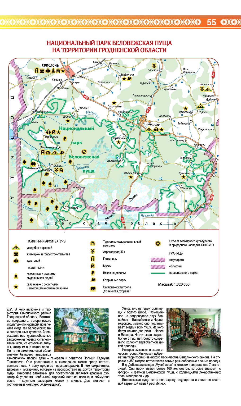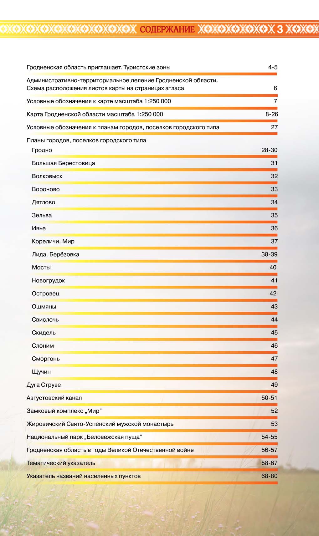 Карта Гродненской области 1:250 000. Планы районных центров с достопримечательностями, указатель названий населенных пунктов Гродненской области. Туристские зоны.